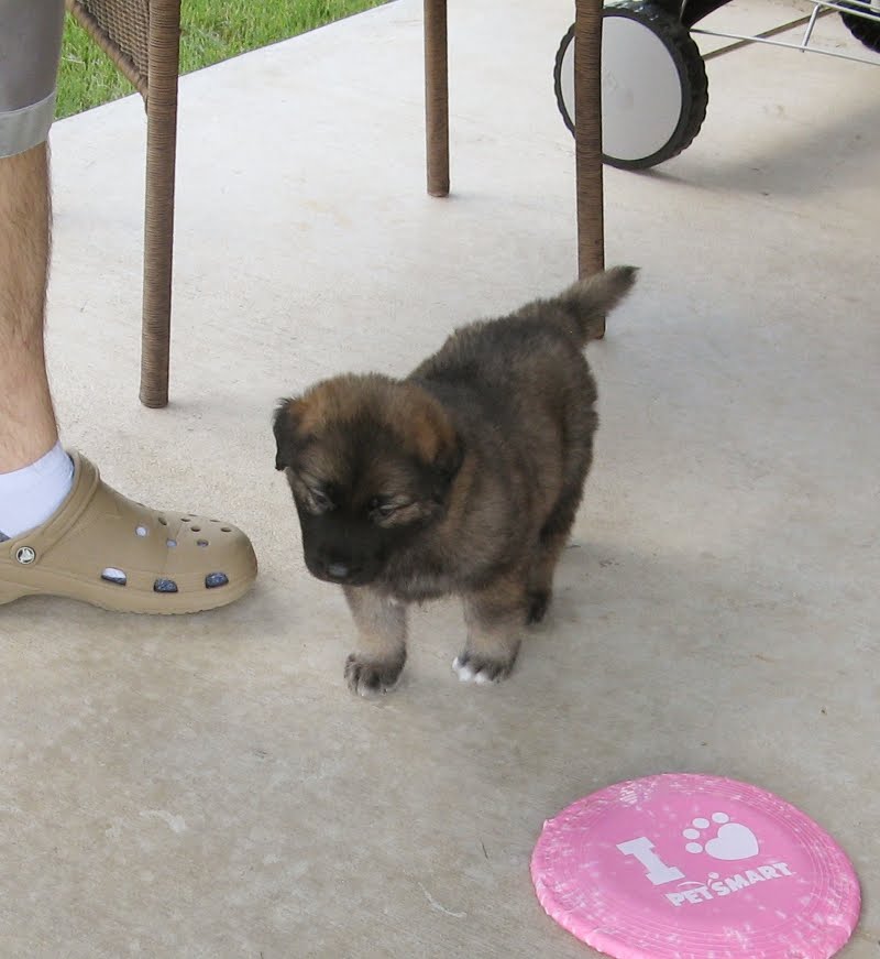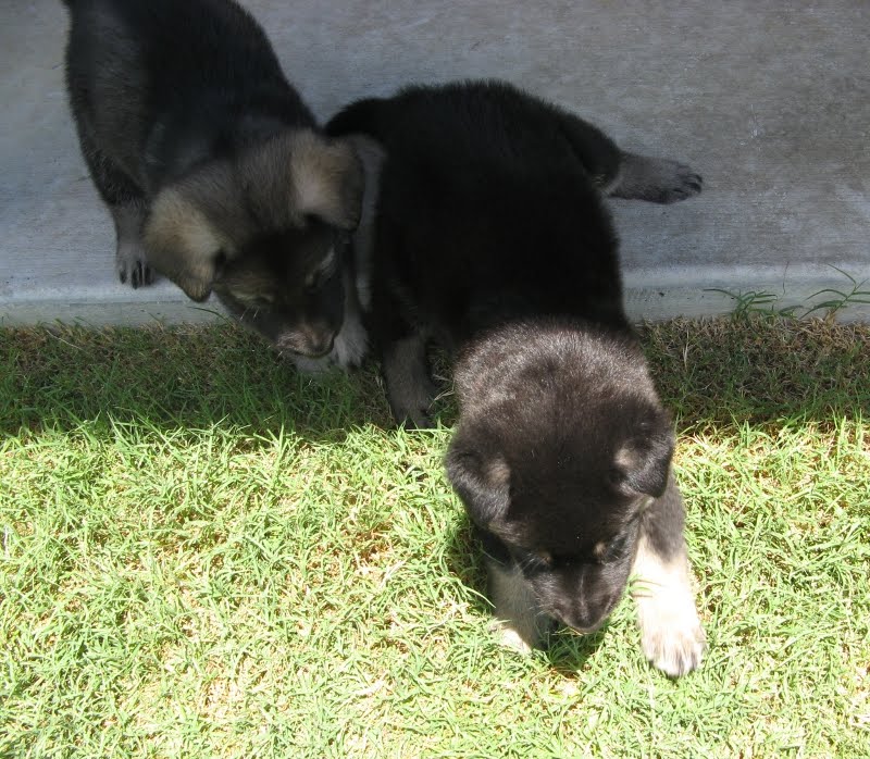 The other big experience this week was that the pups got their first time OUTSIDE! Blazie: "Brownie, do you think it's safe out there?"